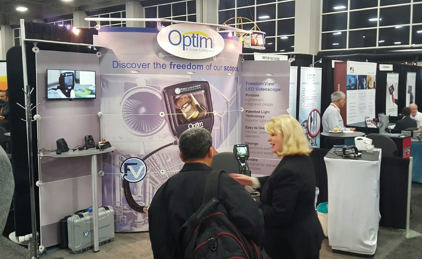 Discover the freedom of our scopes! That is the key message Optim is promoting at this year’s ASNT Annual Conference in Salt Lake City, UT. Joan Serio, Optim Sales Manager is proudly demonstrating the FreedomView LED Videoscope, which can be found in booth #513. The FV Videoscope is being shown to highly qualified professionals so they too can learn how it to can transform their general inspections, saving time and money.